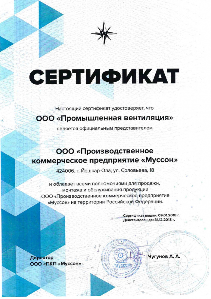 Мы являемся официальными дилерами ведущих российских производителей компонентов промышленной вентиляции. Здесь представлены сканы документов, подтверждающих это.